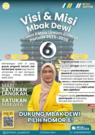 Dukung Mbak Dewi, pilih nomor 6 demi ILUNI UI yang lebih modern, inklusif, dan berdaya saing global.