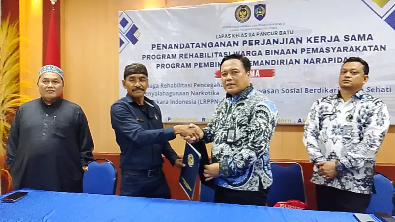 DELI SERDANG – Lapas Kls IIA Pancurbatu bersama Yayasan Sosial Berdikari Karya Sehati (YASOS BKS) dan Lembaga Rehabilitasi Pencegahan Penyalahgunaan Narkotika Bhayangkara Indonesia (LRPPN BI) melaksanakan acara penandatanganan perjanjian kerjasama program pembinaan kemandirian dan rehabilitasi warga binaan pemasyarakatan.