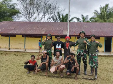 Setelah kegiatan, suasana keakraban terjalin dalam sesi komunikasi sosial. Personel Satgas dan warga duduk bersama, minum kopi dan teh, serta berbincang santai tentang harapan untuk masa depan anak-anak di kampung mereka.