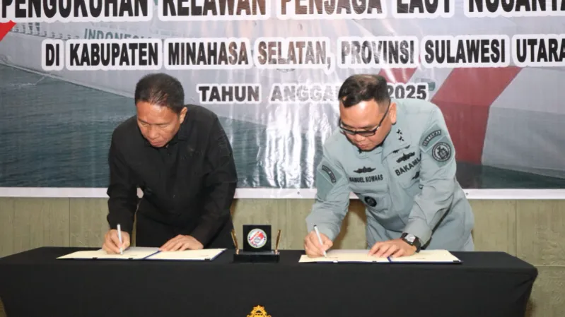 Minahasa Selatan – Sekretaris Utama Bakamla RI, Laksdya TNI Dr. Dr. Samuel H.H. Kowaas, M.Sc., CSBA., secara resmi mengukuhkan 30 Relawan Penjaga Laut Nusantara (Rapala) di Kabupaten Minahasa Selatan, Provinsi Sulawesi Utara, sekaligus menandatangani Naskah Kerja Sama (MoU) antara Bakamla RI dan Pemerintah Kabupaten Minahasa Selatan. Kegiatan berlangsung di salah satu hotel di Minahasa Selatan, Kemarin.