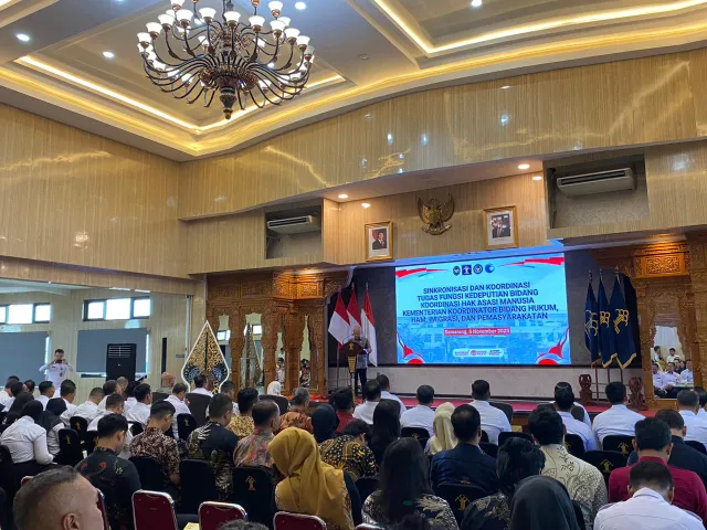 Surakarta – Kepala Rutan Kelas I Surakarta turut hadir dalam kegiatan Sinkronisasi dan Koordinasi Tugas dan Fungsi (Tusi) Deputi Bidang Koordinasi Hak Asasi Manusia, yang diselenggarakan di Aula Kantor Wilayah Kementerian Hukum Jawa Tengah, Kamis (06/11/2025).