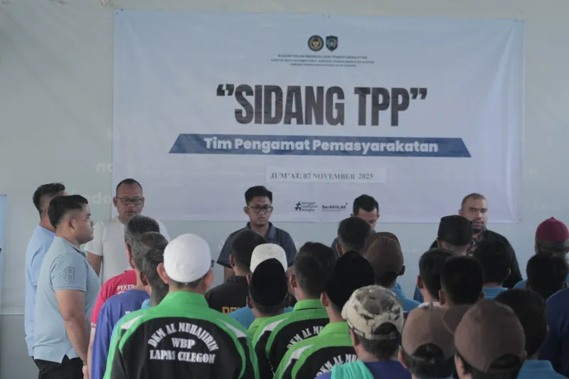 Cilegon, INFO_PAS β Lembaga Pemasyarakatan (Lapas) Kelas IIA Cilegon melaksanakan Sidang Tim Pengamat Pemasyarakatan (TPP) bagi sebanyak 165 Warga Binaan Pemasyarakatan (WBP) pada Jumat (7/11/2025). Kegiatan ini bertujuan untuk menilai perkembangan perilaku, kedisiplinan, serta hasil pembinaan yang telah dijalani warga binaan selama menjalani masa pidana. Sidang TPP dipimpin langsung pejabat struktural serta tim pembinaan. Kegiatan ini turut dihadiri oleh perwakilan dari Balai Pemasyarakatan (Bapas) Serang, yang berperan dalam memberikan pertimbangan dan analisis terhadap rekomendasi hasil pembinaan warga binaan. βSidang TPP merupakan tahapan penting dalam proses pembinaan. Kami memastikan setiap keputusan, baik terkait penempatan maupun pemberian hak integrasi, dilakukan secara objektif, transparan, dan akuntabel,β ujar Kalapas Cilegon, Raja Muhammad Ismael Novadiansyah. Kalapas juga menambahkan bahwa sinergi antara Lapas dan Bapas menjadi kunci penting dalam memastikan pembinaan berjalan efektif. βKolaborasi dengan Bapas Serang sangat membantu dalam memberikan masukan objektif berdasarkan asesmen sosial warga binaan. Ini wujud nyata kerja bersama dalam menciptakan pembinaan yang manusiawi dan tepat sasaran,β tambahnya. Melalui sidang TPP ini, diharapkan hasil evaluasi dapat menjadi dasar pengambilan keputusan yang tepat dalam pemberian hak-hak warga binaan serta memperkuat komitmen Lapas Cilegon menuju pembinaan yang produktif, transparan, dan berkeadilan.