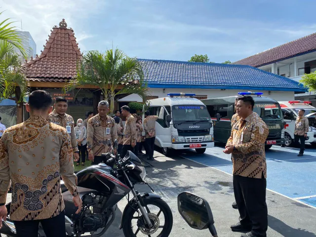 Adapun kendaraan yang diperiksa meliputi 2 unit mobil elf, 1 unit ambulans, 4 unit mobil operasional, dan 2 unit sepeda motor dinas. Pengecekan meliputi aspek kelayakan fungsi, kebersihan, serta kondisi fisik kendaraan yang setiap harinya digunakan untuk menunjang kegiatan operasional petugas.