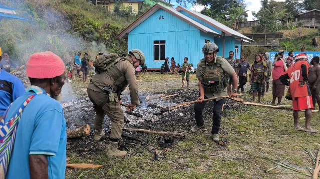 Tradisi bakar batu yang merupakan bagian dari kearifan lokal masyarakat Papua berlangsung dengan tertib hingga selesai pada sore hari. Warga mengikuti setiap rangkaian kegiatan dengan penuh kekhidmatan, sementara personel Satgas Operasi Damai Cartenz tetap siaga memastikan situasi tetap kondusif.